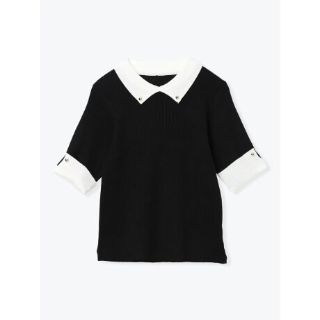 リブ襟配色ニットトップス