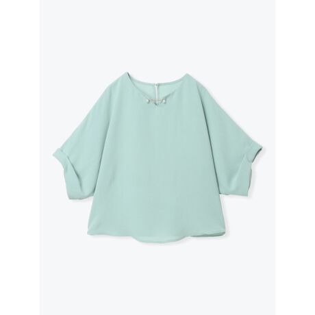 ネックラインにあしらったパール調アクセントが上品に映えるドルマンブラウス。