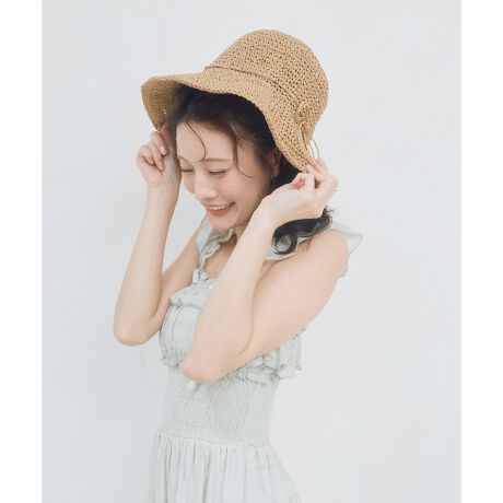 繊細な細編みで仕上げた、軽やかでナチュラルな雰囲気のペーパーハット。