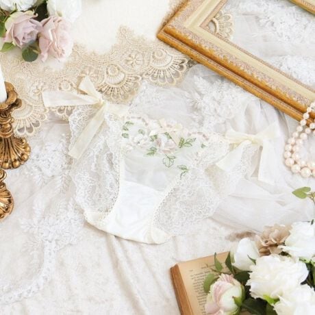 「精神の美」という花言葉を持つクレマチスをモチーフにした、華やかで洗練されたシリーズです。クレマチスの花びらには1枚ずつ繊細なグラデーションをほどこして、上品で優雅な女性らしさを演出。花びらとは対照的なステッチで描かれたリーフは、素朴な可愛らしさをプラスしてくれます。幾何学模様をほどこしたスカラップは、あえて控えめなディテールでクラシカルな印象を後押し。繊細なラメ糸のきらめきが動くたびに上品な輝きを放つ、特別感あふれるコレクションです。