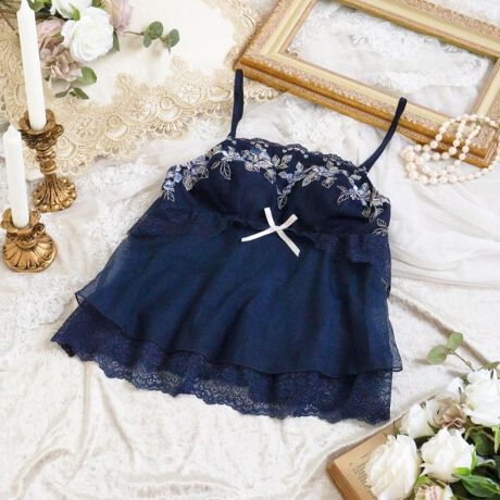 カップがついたタイプのキャミソールなので、ブラジャーを着けずにこれ1枚でご着用いただけます。身生地はチュール素材を使用しており、さらりとした気持ちの良い着心地です。