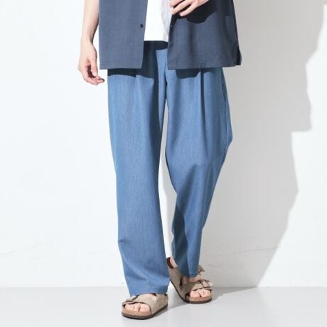 デニムライク セミワイドイージーパンツ 【ベルト要らず/洗濯機OK】