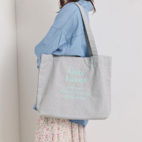 気分も上がるロゴ刺繍。地球に優しいリサイクルコットンのA4ラージトート。