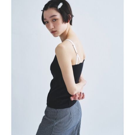 シンプルにまとまりがちなキャミソールを、都会的でエッジの効いた一着へとアップデート。