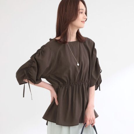 【通気性あり/涼しい/マシンウォッシャブル】ウエストギャザーボリュームブラウス