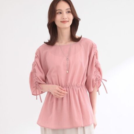 【通気性あり/涼しい/マシンウォッシャブル】ウエストギャザーボリュームブラウス