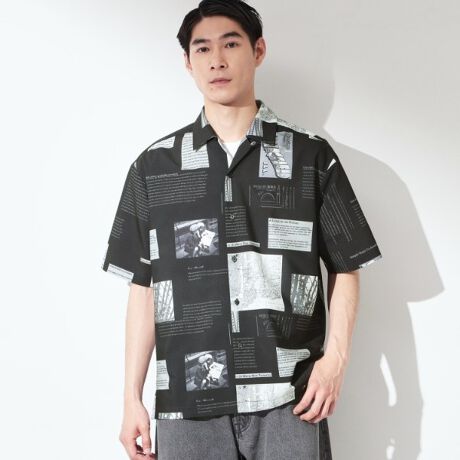 プリント柄 開襟半袖シャツ 【洗濯機OK】