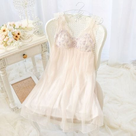 優雅なアンティークの壁紙を思わせる、繊細で上品なシリーズです。淡い色彩で彩られたお花の中にきらめくラメ糸を散りばめて、印象的な輝きを演出しました。身生地にはギャザーを寄せたチュールレースをふんだんにあしらい、ふんわりと優しい印象に。胸元から背中にかけてはストレッチレースをほどこし、リラックスタイムにお洋服感覚で着られるデザインに仕上がりました。フロントとバックスタイルにはリボンを添えて、ポイントでお花のアップリケを重ねることで、思わず心ときめく特別感をプラスします。フラワーガーデンを訪れたような、お花にそっと包み込まれる可憐なコレクションです。