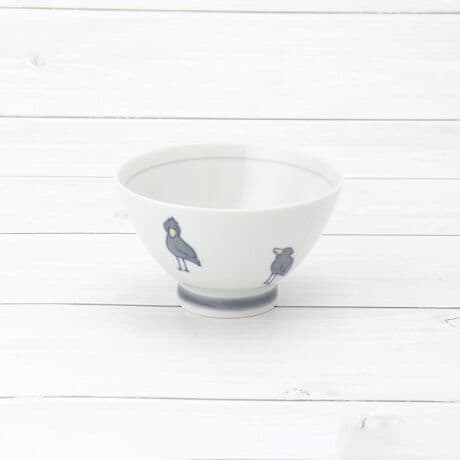 ころっとしたユニークで魅力的な表情の鳥たちが一周描かれたお子様か大人までお使いいただけるサイズの可愛らしい飯碗です。