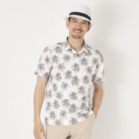 メッシュヤシプリント半袖ポロシャツ