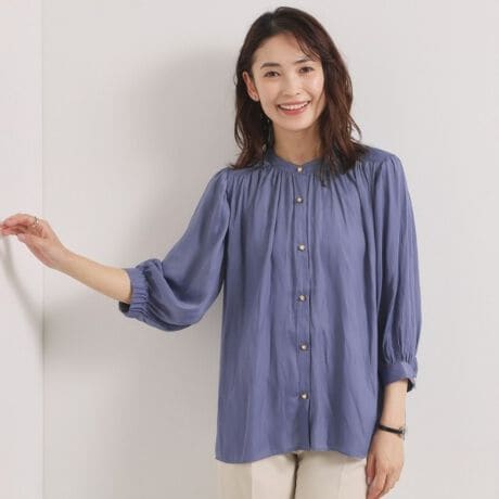 とろみ感と軽さが特徴の薄手サテン素材でギャザーを寄せたふんわり柔らかなシルエットがポイント。