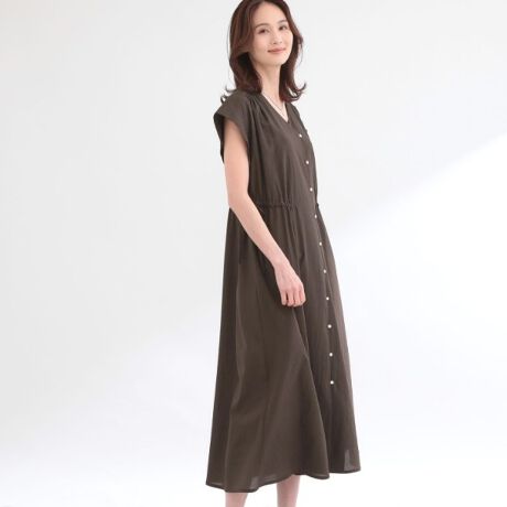 【通気性あり/涼しい/マシンウォッシャブル】フロントボタンワンピース