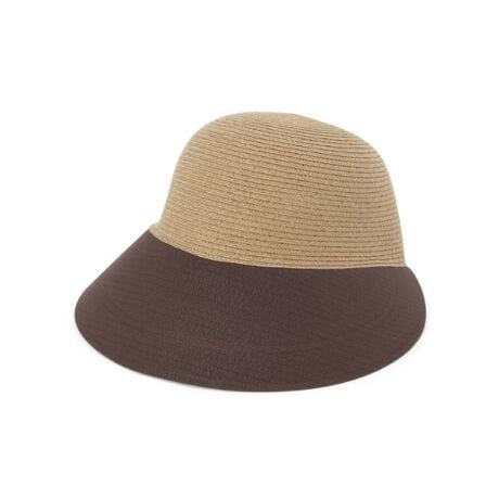 クラウン部分は涼しげなブレード素材、ツバ部分は上品な布帛生地を組み合わせた、異素材ドッキングデザイン。