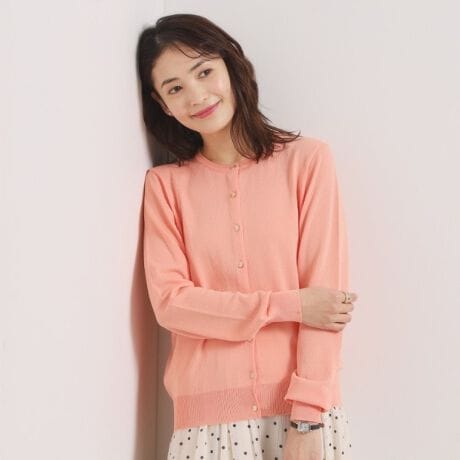 ONにもOFFにも使えるベーシックなクルーネックニットカーディガン。