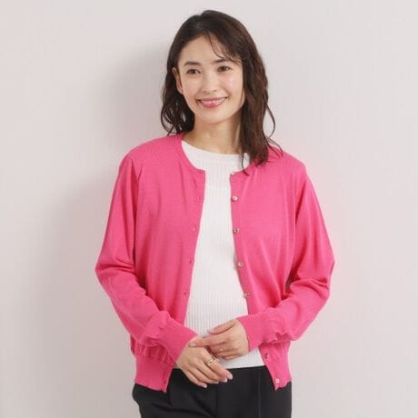 ONにもOFFにも使えるベーシックなクルーネックニットカーディガン。