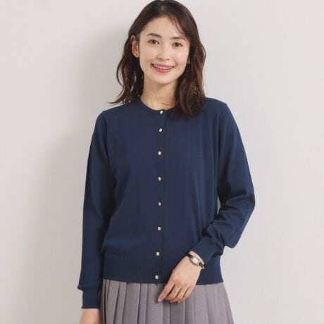 ONにもOFFにも使えるベーシックなクルーネックニットカーディガン。