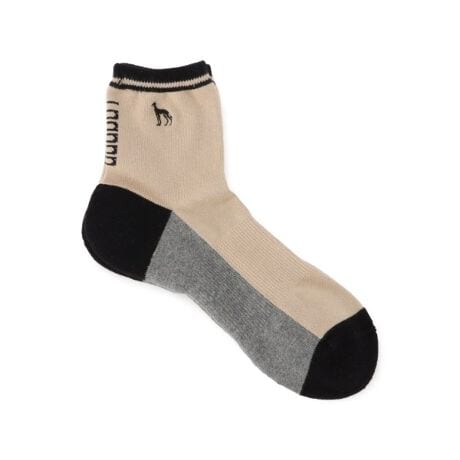 バイカラーブロッキングが視線を縦に誘導し、足元をすっきりと見せるショート丈ソックスです。