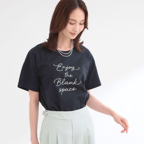 【接触冷感】ラインアート刺繍Tシャツ
