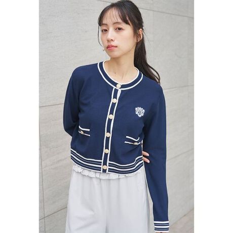 <b>【上品さと機能性を兼ね備えたエンブレムニットカーディガン】</b>