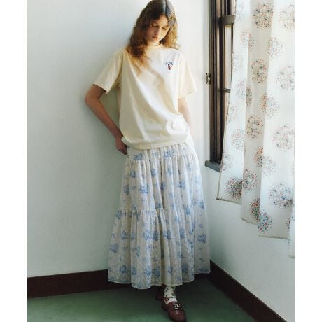 販売中のTシャツや、同柄のブラウスとのセットアップもおすすめ。日常のコーディネートに華やかさを添えてくれる、頼れる一枚です。