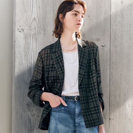 程よくゆとりを持たせたセミダブルのシルエットが、端正な佇まいに適度なリラックス感を添えます。