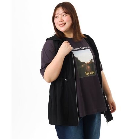 カジュアルな着心地と大人っぽさを両立した、フーディーデザインのジレ。