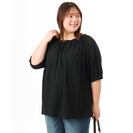 甘さと抜け感をバランスよく取り入れた、大人のためのアイレットトップス。