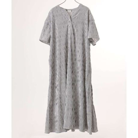 楊柳風の縦シボと、ボーダー状に入ったシャーリングの凹凸が表情豊かなストライプドレス。