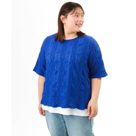 マルイウェブチャネル   /   エウルキューブ   /   トップス   /   Tシャツ・カットソー   /   【WEB先行販売】【大きいサイズ】シャーリングレースアンサンブル