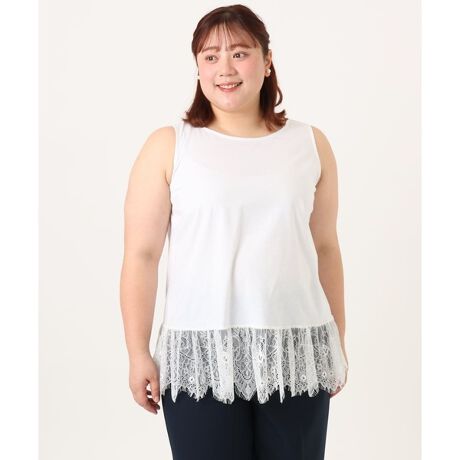 レイヤードスタイルで活躍する、レースヘムデザインのタンクトップです。