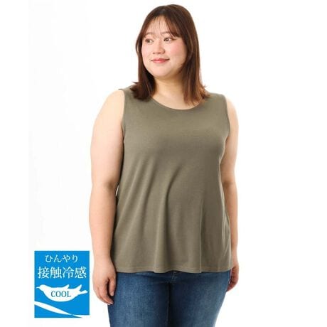 【WEB先行販売】【大きいサイズ/接触冷感】リブラウンドネックタンクトップ