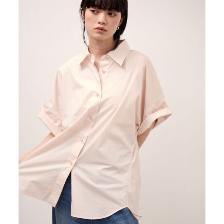 適度にゆとりを持たせたながらも細身シルエットのボディに対して、大きめなハーフスリーブがポイントのシャツ。