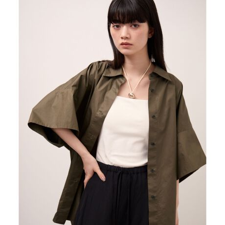 適度にゆとりを持たせたながらも細身シルエットのボディに対して、大きめなハーフスリーブがポイントのシャツ。