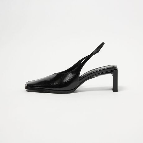 アッパーのアシンメトリーな曲線が甲をすっきりと見せてくれるパンプス。