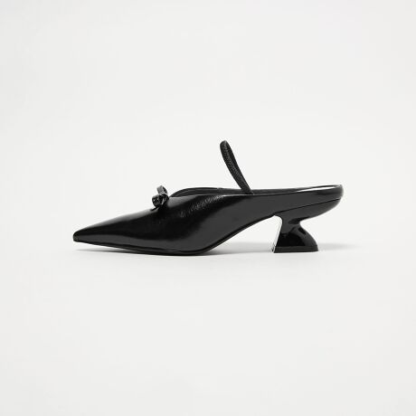 くびれたヒールデザインが女性らしさを引き立てるミュール。