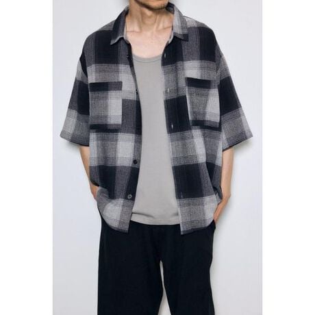 ■チェック半袖SH■ポイントからみ織り特有の透け感があり、通気性が良いのが特徴です。独特のタッチ感もポイント。大判のオンブレチェックとビッグシルエットで、1枚でも存在感のあるシャツです。■ディテール開襟衿仕様で、第一釦位置を通常の開襟シャツより上に設定しているため、襟の収まりが良いのが特徴です。■スタイリングロングパンツでもショーツでも合わせやすい1枚です。オンブレチェック柄なので、シンプルなパンツと合わせるだけでも目を引くスタイリングになります。■生地TCからみ織の先染めチェックを使用しています。透け感:ややあり裏 地:なし伸縮性:なし光沢感:なし※お取り扱い上のご注意・本品は素材の特性上色落ちします。洗濯、クリーニング、着用(使用)時に他の衣類や雑貨、家具類に色移りする事があります。・特に汗や雨等で湿った状態では、色落ちが顕著になります。白、淡色との組み合わせは避け、お取り扱いには十分ご注意下さい。・本品は過度な力の加わりで縫い目が開いたり、織り糸が滑り織目が開く性質があります。・また、引っ掛けにより糸の飛び出しや引きつれが生じやすいのでご注意下さい。[注意事項]※画像の商品はサンプルです。実際の商品と仕様、加工が若干異なる場合があります。※画像の商品は光の照射や角度、お使いのモニター環境により、実物と色味が異なる場合がございます。※着用、お取り扱いの際は、アテンションタグをご確認ください。