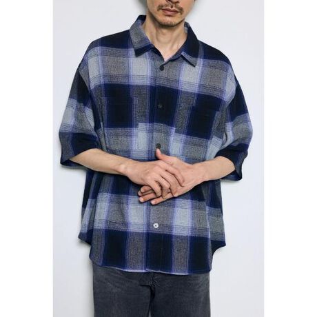 ■チェック半袖SH■ポイントからみ織り特有の透け感があり、通気性が良いのが特徴です。独特のタッチ感もポイント。大判のオンブレチェックとビッグシルエットで、1枚でも存在感のあるシャツです。■ディテール開襟衿仕様で、第一釦位置を通常の開襟シャツより上に設定しているため、襟の収まりが良いのが特徴です。■スタイリングロングパンツでもショーツでも合わせやすい1枚です。オンブレチェック柄なので、シンプルなパンツと合わせるだけでも目を引くスタイリングになります。■生地TCからみ織の先染めチェックを使用しています。透け感:ややあり裏 地:なし伸縮性:なし光沢感:なし※お取り扱い上のご注意・本品は素材の特性上色落ちします。洗濯、クリーニング、着用(使用)時に他の衣類や雑貨、家具類に色移りする事があります。・特に汗や雨等で湿った状態では、色落ちが顕著になります。白、淡色との組み合わせは避け、お取り扱いには十分ご注意下さい。・本品は過度な力の加わりで縫い目が開いたり、織り糸が滑り織目が開く性質があります。・また、引っ掛けにより糸の飛び出しや引きつれが生じやすいのでご注意下さい。[注意事項]※画像の商品はサンプルです。実際の商品と仕様、加工が若干異なる場合があります。※画像の商品は光の照射や角度、お使いのモニター環境により、実物と色味が異なる場合がございます。※着用、お取り扱いの際は、アテンションタグをご確認ください。