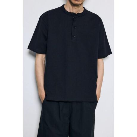 ■ヘンリーネックハングTEE■ポイントヘンリーネックの前立てがアクセントになる、ワーク感のあるハングTEE。ざっくりとしたドライな表情と程よい厚みが、男らしい無骨な雰囲気を演出します。着込むほどに風合いが増し、長く愛用できる一枚です。WHT・BLKのベーシックカラーで、幅広いスタイリングに取り入れやすいのもポイントです。■ディテールコットン100%のしっかりとした厚手生地を使用した、タフな作りが魅力。表面は粗めのテクスチャーで、着込むほどに柔らかく体に馴染んでいく特性があります。ヘンリーネックのボタン仕様は、開閉によって首元の表情に変化をつけられます。袖口・裾は耐久性を考慮した縫製で、デイリーに使いやすい仕様に仕上げています。S/M/Lの3サイズ展開。■スタイリング【カジュアル】デニムやチノパンツと合わせて無骨で男らしい日常スタイルに。【レイヤード】シャツやミリタリージャケットのインナーとして合わせ、首元のボタンを見せることでアクセントになります。【今っぽく】スラックス+スニーカーでラフに外すと程よく洗練された印象になります。■生地ドライでざっくりとした質感とがっしりした厚みのタフさが特徴の生地です。着込むほどにさらに柔らかく肌になじみ、味わい深い古着のような風合いが出てきます。 透け感:なし裏 地:なし伸縮性:なし光沢感:なし[注意事項]※画像の商品はサンプルです。実際の商品と仕様、加工が若干異なる場合があります。※画像の商品は光の照射や角度、お使いのモニター環境により、実物と色味が異なる場合がございます。※着用、お取り扱いの際は、アテンションタグをご確認ください。