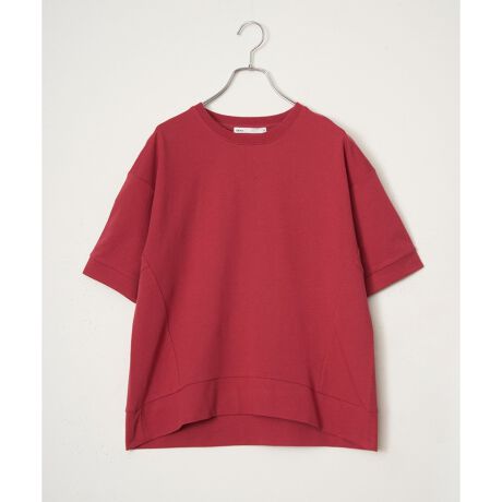 スウェットのようなリブ使いとVガゼットでシンプルなカットソーにトレンド感をプラス。