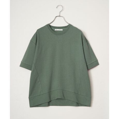 スウェットのようなリブ使いとVガゼットでシンプルなカットソーにトレンド感をプラス。