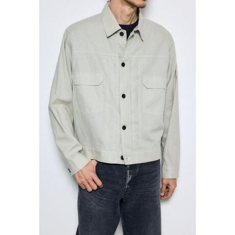 ■Gジャンタイプシャツブルゾン■ポイントトラッカージャケットの2ndタイプをベースにしたGジャンタイプのシャツブルゾン。■ディテール天然素材のコットンとリネンをブレンドした、両素材の良さを兼ね備えた生地を使用。柔らかく吸水性に優れたコットンと、通気性が高く独特のシャリ感が魅力のリネンにより、爽やかな着心地を実現しています。Gジャンらしいフラップポケットや切替デザインがアクセントになっています。■スタイリングコットンやTC素材のワークパンツ、スラックスと合わせたカジュアルスタイルがおすすめ。フロントを開けてラフに羽織り、袖を軽くまくってショーツと合わせれば、真夏まで使える軽羽織としても活躍します。■生地通気性に優れたコットンリネンのパナマクロス素材を使用しています。透け感:ややあり裏 地:なし伸縮性:なし光沢感:なし[注意事項]※画像の商品はサンプルです。実際の商品と仕様、加工が若干異なる場合があります。※画像の商品は光の照射や角度、お使いのモニター環境により、実物と色味が異なる場合がございます。※着用、お取り扱いの際は、アテンションタグをご確認ください。
