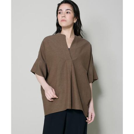■デザインニュアンスのあるオーバーサイズのプルオーバーシャツ。抜け感のある襟デザインや身体が泳ぐシルエットは、スタイルをより華奢に見せてくれます。袖口を折り返したり、襟を抜かせたりと、着こなしをお楽しみいただけるデザインです。■素材タテ糸にレーヨン、ヨコ糸に綿とリネンを組み合わせることにより、ハリ感の中に優しいドレープ感を感じる素材です。仕上げでは強めのワッシャータンブラーを施し、レーヨンのエレガントさと綿、麻のナチュラルな雰囲気を併せもった素材です。・水洗い可同素材のワイドパンツ品番:10-62161016■サンプル撮影商品画像の商品はサンプルです。実際の商品とはサイズや色味、素材、デザイン等の仕様が若干変更になる場合がございます。■照明の関係により、実際の製品とは色味が違って見える場合があります。またパソコン・スマートフォンなどの環境により、若干製品と画像のカラーが異なる場合もございます。■サイズ表記はあくまで目安となります。