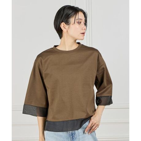 ■デザイン袖口と裾に施されたオーガンジーのシアー素材が軽やかで清涼感のある印象を演出。後ろ身頃に少しだけボリュームを出すパターンテクニックにより、サイド、バックからの見え方にも立体感を作り、シンプルなシルエットながらデザイン性のある、一枚で華やかさをプラスしてくれるアイテムです。■素材高級(超長)綿のスーピマコットンを(32Gの)ハイゲージで編みあげたポンチ素材。高密度で編むことにより今までにないシャープさとハリ感を表現しています。また、特別な加工(ロイヤルクール加工)を施す事で、糸の毛羽をそぎ落とし生地表面の上品な光沢をプラスしました。綿100%でありながら合繊の様な程良いドレープ性を持つ素材です。また、淡色でも透けにくい素材感や高いストレッチ性で快適な着心地を叶えます。・水洗い可■サンプル撮影商品画像の商品はサンプルです。実際の商品とはサイズや色味、素材、デザイン等の仕様が若干変更になる場合がございます。■照明の関係により、実際の製品とは色味が違って見える場合があります。またパソコン・スマートフォンなどの環境により、若干製品と画像のカラーが異なる場合もございます。■サイズ表記はあくまで目安となります。