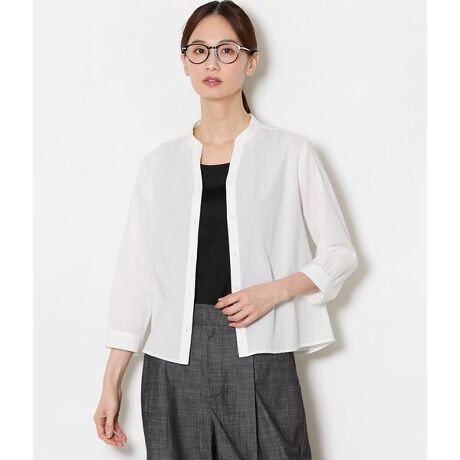 昨年の人気モデルのスキッパーシャツを、素材を変えてアップデート。顔まわりをすっきりと見せるスキッパー衿が涼しげな印象を演出します。やや短めの着丈なので裾をインせずバランスよく着用でき、パンツやスカートと好相性。7分袖で軽やかに着られ、羽織りとしても便利な一着です。