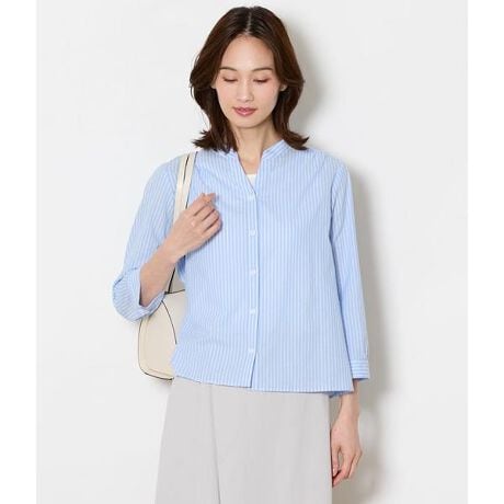 昨年の人気モデルのスキッパーシャツを、素材を変えてアップデート。顔まわりをすっきりと見せるスキッパー衿が涼しげな印象を演出します。やや短めの着丈なので裾をインせずバランスよく着用でき、パンツやスカートと好相性。7分袖で軽やかに着られ、羽織りとしても便利な一着です。