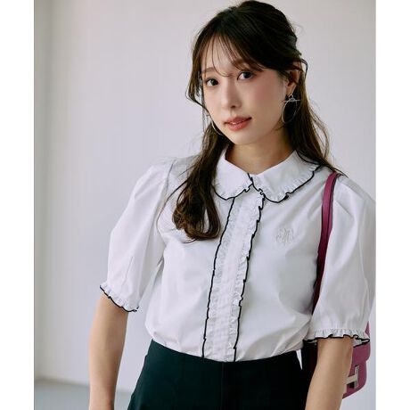 マルイウェブチャネル   /   マーリエ ル カセット   /   トップス   /   シャツ   /   《M Maglie le cassetto×冨張愛》華やかフリルカラーロゴ刺繍ブラウス