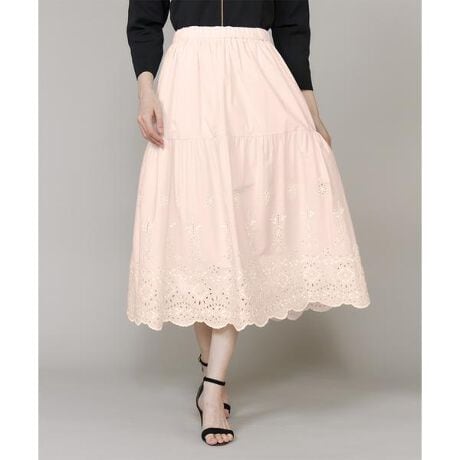 ■デザイン繊細なボーラーレースを贅沢に使用した軽やかに揺れるティアードロングスカート。細やかなアイレット刺繍が上品に映え、歩くたびに華やかな存在感を放ちます。ウエストは総ゴム仕様で心地よくフィットし、ストレスフリーな穿き心地を実現。ティアード切り替えが生み出す柔らかなボリュームが女性らしい立体的なシルエットを演出します。動くたびにふわりと揺れるレースと裾に広がる表情豊かなデザインが、コーディネートを一気に華やかに引き立てます。同素材のブラウスやパーカーブルゾンと合わせれば統一感のある洗練されたスタイルに。Tシャツやニット、デニムジャケットとのカジュアルミックスも相性抜群で、デイリーからお出かけまで幅広く活躍する万能スカートです。■素材T/C素材を使用したエンブロイダリーレースです。バロック調の優雅なモチーフを、繊細なアイレット刺繍で表現し、カジュアルな中にも上品な存在感を添えています。さらに、UVカット・撥水加工を施しているため、機能性とエレガンスを兼ね備えています。・水洗い可・ポケットあり・裏地あり・ウエストゴム仕様同素材のブルゾン品番:5162144516同素材のブラウス品番:5162182517■サンプル撮影商品画像の商品はサンプルです。実際の商品とはサイズや色味、素材、デザイン等の仕様が若干変更になる場合がございます。■カラーについては、可能な限り実際の商品に近いカラーにて撮影をおこなっておりますが、照明の関係により実際の製品とは色味が違って見える場合があります。またパソコン・スマートフォンなどの環境により、若干製品と画像のカラーが異なる場合もございます。現物と画像のカラー差異については返品理由となりませんので、予めご了承ください。■サイズ表記はあくまで目安となります。