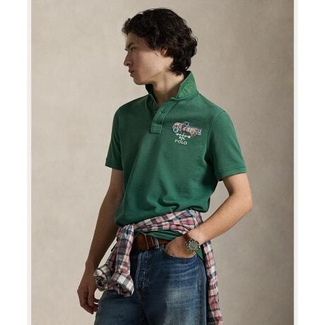 1972年の登場以来、多くの類似製品の出現にもゆるがないアメリカンスタイルをキープしてきた確固たる定番ポロシャツ。数十年を経て、シグネチャースタイルのアイコニックなオリジナルのディテールに対する品質やこだわりはそのままに、多彩なカラーとフィットで新たに登場。Polo Countryコレクションのひとつ。トラックのウェザーベーンのパッチワークアップリケをあしらい、ラスティックなルックを演出したメッシュバージョン・クラシックフィット:胸、ウエスト、袖にかけてゆったりとしたカット、肘上までかかる低いアームホール・リブのポロカラー / 2つボタンの前立て / メタルボタン・半袖、リブアームバンド・左胸にトラックのウェザーベーンのパッチワークアップリケとRL Poloのプリント・テニステール・モデル身長185cm、着用サイズM 【素材】・本体:綿 100% 装飾部分を除く【生産国】カンボジア