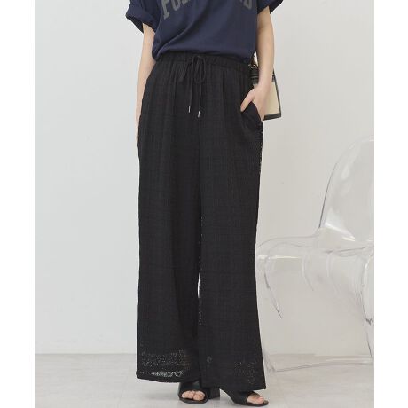 レースとメローデザインで華やかさを添える軽やかパンツ繊細なレース素材が印象的な、上品な雰囲気のパンツです。サイドにあしらったメローデザインがさりげないアクセントになり、シンプルなコーディネートにも華やかさをプラスしてくれます。軽やかなレース素材は見た目にも涼しげで、季節感のあるスタイリングを楽しめるのが魅力です。ウエストはゴム仕様になっているため、締め付け感が少なくリラックスした履き心地を叶えてくれます。ゆったりとしたシルエットで身体のラインを拾いにくく、快適に着用できるのも嬉しいポイントです。Tシャツやブラウス、チュニックなど幅広いトップスと合わせやすく、カジュアルからきれいめまでさまざまなスタイリングに活躍します。普段のコーディネートに取り入れるだけで、程よい抜け感と女性らしさを演出してくれるパンツです。透け感[ややあり]