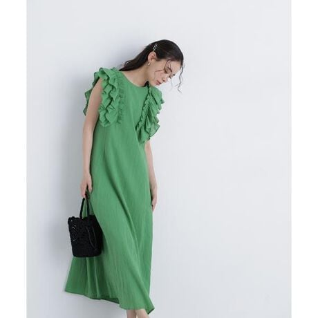 デザインフリル楊柳ワンピース